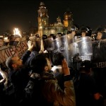 MEXICO – Een protest van tienduizenden Mexicanen tegen de verdwijning van 43 studenten, is met geweld geëindigd. Een kleine groep gemaskerde demonstranten viel de politie aan in Mexico-Stad met stenen en stokken. Voorafgaand aan het geweld verliep de demonstratie juist vreedzaam, in tegenstelling tot eerdere protesten. Die liepen uit op verbranding van overheidsgebouwen in de staat Guerrero, waar de studenten verdwenen. Toen gemaskerde demonstranten zich bij het protest voegden, schreeuwden andere demonstranten dat ze geen geweld moesten gebruiken en hun masker moesten af doen…[+]