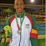 ZWEMMEN – Renzo Tjon A Joe heeft donderdagavond weer eremetaal behaald voor Suriname, tijdens de 22ste Centraal-Amerikaanse en Caribische Spelen (Cacso). De Surinaamse zwemmer haalde in het Leyes de Reforms Aquat Center op de 50 meter vrije slag een zilveren medaille met een tijd van 22.62. George Bovell III (Trinidad & Tobago) pakte goud met een tijd van 22.30 secondes. De Cubaan Hanser Garcia werd derde met een tijd van 22.69 secondes. Tjon A Joe begon de wedstrijd goed en lag de eerste 25 meter gelijk met Bovell III. Het waren de laatste 25 meter die de doorslag brachten. Hierin nam Bovell III een lichte voorsprong op Tjon A Joe en tikte als eerste aan…[+]