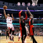 BASKETBAL – Zes wedstrijden was Toronto Raptors, de koploper van Eastern Conference, al ongeslagen maar daar is maandag een einde aan gekomen. Toronto Raptors ging namelijk onderuit tegen Chicago Bulls, waar Derrick Rose na ziekte zijn rentree maakte na twee wedstrijden. De eindscore was 129-120 in het voordeel van Bulls. Hoewel Rose met 29 punten de topscorer was bij Bulls, moeten we vooral ook credits geven aan Jimmy Butler. In 44 minuten kwam de jongeling uit Chicago tot een indrukwekkend rijtje getallen: 27 punten, 11 rebounds, 5 blocks.(SA)…[+]