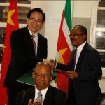 PARAMARIBO – Suriname heeft USD 9,6 miljoen van de Volksrepubliek China ontvangen. De helft daarvan betreft een rentevrije lening van USD 4,8 miljoen, terwijl het andere deel een schenking is. Verder hebben beide landen in een letter of exchange formeel de specificaties vastgelegd met betrekking tot de financiering van het Wanica Medisch Centrum. De Chinese ambassadeur Yang Zigang en de Surinaamse ministers van Buitenlandse Zaken en Financiën hebben gisteren de overeenkomsten daartoe getekend…[+]