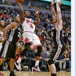 BASKETBAL – Chicago Bulls heeft onder aanvoering van Derrick Rose (22 punten) gewonnen van San Antonio Spurs: 104-81. D-Rose had zich eerder kritisch uitgelaten over de prestaties van zijn Bulls, datzes van de laatste acht duels had verloren. Het werd al snel in het eerste quarter duidelijk dat de point guard zijn team op sleeptouw wilde nemen. Rose speelde agressief, schuwde geen contact en wist zich veelvuldig naar een scoringspositie te manoeuvreren. Lange tijd hield Kawhi Leonard de Spurs in leven, maar al zijn zestien punten werden in de eerste helft gescoord. (SA).(foto:Xinhua)…[+]