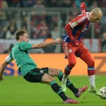 VOETBAL – Bayern München heeft nog geen zege behaald in 2015. In eigen huis speelde de ploeg van Josep Guardiola gelijk tegen Schalke 04: 1-1. Arjen Robben maakte het doelpunt voor de thuisclub, die heel lang met tien man speelde. Bayern had het afgelopen weekend bij de herstart van de Bundesliga verrassend verloren van VfL Wolfsburg (4-1) en kreeg tegen Schalke snel een nieuwe dreun. In de zeventiende minuut kreeg Der Rekordmeister namelijk rood, nadat Jerôme Boateng binnen het strafschopgebied de doorgebroken Sidney Sam had gevloerd. De daaropvolgende penalty werd echter gemist door Eric Choupo-Moting.(VI).(Foto: Voetbalzone)…[+]