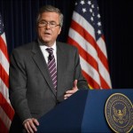 VS – Jeb Bush, die in 2016 een gooi wil doen naar het presidentschap van de Verenigde Staten, heeft zich gedistantieerd van het politieke beleid van zijn vader en broer. ‘Ik heb bewondering voor wat ze voor het land hebben gedaan en voor de moeilijke beslissingen die ze hebben moeten nemen, maar ik ben een onafhankelijke man’, zo zei hij in Chicago. Vader George Bush (90) was gedurende 1989 tot 1993 de 41ste president van de Verenigde Staten, en broer George W. Bush (68) bezette tussen 2001 en 2009 het Witte Huis.(AD/Foto: www.msnbc.com)…[+]