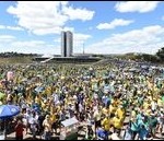 BRASILIA – Duizenden Brazilianen zijn zondag in verschillende steden de straten opgegaan om te protesteren tegen de regering. Alleen al in hoofdstad Brasilia waren naar schatting 25.000 demonstranten op de been. Ze riepen leuzen tegen president Dilma Rousseff en tegen corruptie. In Rio de Janeiro eisen woedende betogers dat Rousseff en ex-president Luiz Inacio Lula da Silva de gevangenis ingaan. Uit peilingen zou blijken dat 66 procent van de Brazilianen wil dat Roussef opstapt. Haar termijn loopt tot 2018.(De Telegraaf)…[+]