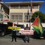 GUYANA-Venezuela’s military aggression close to Guyana’s border has incensed Guyanese. Some have opted to take the ‘Not a blade of grass’ message to the Venezuelan Embassy at, Thomas Street, Georgetown. From about 8:00hrs Wednesday social activist Dennis Atwell began a one-man picketing exercise outside of the Venezuelan Embassy. As the day progressed passersby, including the aged, as well as uniformed school children joined in, albeit brief for some.Other Guyanese in vehicles drove by honking their horns in support of the action and shouting “not a blade of grass!” However, this is just one day of more than two months of protest action around Guyana by this one man who vows to continue daily until the issue is resolved.(KAIETEUR NEWS/ kaieteurnewsonline.com)…[+]