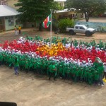 PARAMARIBO – Leerlingen en leerkrachten hebben dinsdag, een dag voor 40 jaar staatkundige onafhankelijkheid, bij de Sint Bernadetteschool aan de Boterbloemstraat een mensenvlag gevormd. Volgens leerkracht Nestylee Saridjo was dit een bijzonder moment, een waar spektakel. Er was grote publieke belangstelling.