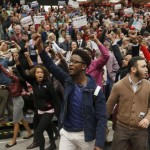 USA – Donald Trump has ordered dozens of black students to be removed from a campaign rally as a furor continues to rage over his failure to condemn the Ku Klux Klan on CNN. The Republican Presidential candidate was speaking at Radford University in Virginia on Monday when the group started chanting: “No more hate! No more hate! Let’s be equal, let’s be great!”
