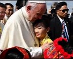 Thousands of Catholics have welcomed Pope Francis to Yangon, where has begun a three-day visit to Myanmar. The trip – fraught with sensitivity and trepidation over how he will deal with the plight of the Muslim Rohingya – could be the trickiest yet of his papacy. After touching down in the early afternoon, the pope was greeted by a large crowd at the airport, many waving yellow and white Vatican flags and dressed in T-shirts bearing the slogan of the trip, “Love and Peace”. As he drove past, they screamed and chanted “we love Papa”. The head of the Catholic church faces a difficult diplomatic balancing act on his first papal visit to Myanmar.(theguardian)…[+]