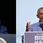 US President Donald Trump and his predecessor, Barack Obama, have directed blistering attacks at each other during rival rallies. Campaigning for Democratic White House nominee Joe Biden in Pennsylvania, Mr Obama likened Mr Trump to a “crazy uncle” and said he emboldened racists. In North Carolina, the Republican president mocked Mr Obama for being wrong about the 2016 election outcome. With 13 days to go until this election, Mr Biden holds a solid lead nationally. But the margin is slimmer in the handful of US states that could go either way and ultimately decide the outcome on 3 November.(BBC)…[+]