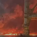 Brand en enorme explosie op schip in haven van Dubai
