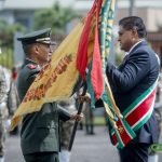 PARAMARIBO – Na zes maanden in de functie waargenomen te hebben, mag kolonel Werner Kioe A Sen zich officieel bevelhebber van het Nationaal Leger noemen. De functionaris is op donderdag 27 oktober 2022 geïnstalleerd als nieuwe legeraanvoerder. Dit moment vond plaats op de appélplaats van de Memre Buku Kazerne in aanwezigheid van president Chandrikapersad Santokhi, defensieminister Krishnakoemarie Mathoera, parlementsvoorzitter Marinus Bee, overige legerfunctionarissen, leden van het Corps Diplomatique en andere hoogwaardigheidsbekleders. President Santokhi sprak over een functie, die niet voor eenieder is weggelegd. Bevelvoering over het Nationaal Leger brengt volgens het staatshoofd bijzondere verantwoordelijkheden met zich mee. “Volgens de bestaande wetgeving moet de bevelhebber erop toezien, dat de soevereiniteit en de territoriale integriteit van Suriname evenals de ondersteuning aan het bevoegd gezag te allen tijde gewaarborgd zijn”, merkte het staatshoofd op. Kolonel Kioe A Sen, die sedert 1 april 2022 belast was met de waarneming in de bevelvoering over het Nationaal Leger, wacht zware verantwoordelijkheden, die gepaard gaan met kennis, gedrevenheid, slagvaardigheid, toewijding en hard werken. De president benadrukte dat het een functie is, waarbij de samenleving moet kunnen rekenen op bijstand van deze functionaris. De bevelhebber is ten dienste van de samenleving, die hij moet beschermen. Bevelhebber Kioe A Sen werd door het staatshoofd geattendeerd op de uitdagende tijden, waarbij het van belang is om het personeel gemotiveerd te houden. Ook vroeg hij de ondersteuning van de nieuwe legeraanvoerder bij de transformatie welke het Nationaal Leger momenteel ondergaat…[+]