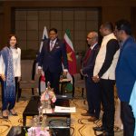 Minister Ramdin geeft aan dat er ook vanuit Indiase zijde behoefte is om collectief de Caribische regio te ontmoeten. President Santokhi heeft de Indiase premier uitgenodigd om Suriname te bezoeken in het kader van de herdenking van 150 jaar Hindoestaanse Immigratie. De minister zegt dat de ontmoeting tussen India en de Caricom een additionele activiteit zou kunnen zijn. “Het voorstel is gedaan. Het is nu wachten op wat de reactie is van premier Modi op de uitnodiging van Suriname.” Volgens de BIBIS-minister zal een ontmoeting met de Caricom passen in de context van het vervolg van de nu lopende diaspora conferentie in India. “Omdat vele landen in de regio een Indiase diaspora hebben”, zegt hij doelend op Centraal Amerika en het Caribisch gebied…[+]