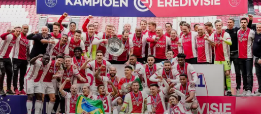 Ajax heeft zich zondag voor de 35e keer gekroond tot kampioen van Nederland. De Amsterdammers rekenden in de Johan Cruijff ArenA af met FC Emmen (4-0) en zijn met nog drie wedstrijden te gaan niet meer te achterhalen door de concurrentie. Halverwege stond het pas 1-0 voor Ajax door een goal van JurriĆ«n Timber in de tiende minuut en had FC Emmen ook al wat mogelijkheden gehad. Na rust speelde Ajax beter en werd alsnog flink afstand genomen van de ploeg van trainer Dick Lukkien, die sinds 12 februari niet meer verloren had. Haller maakte de 2-0, Devyne Rensch kopte de 3-0 binnen en Klaassen bepaalde eveneens met het hoofd de eindstand op 4-0. Bij de derde en vierde treffer was de assist van Dusan Tadic.(NU)…[+]