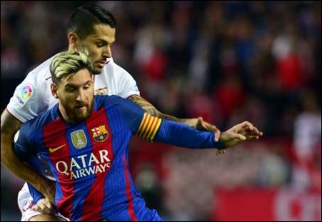 FC Barcelona blijft door een krappe zege bij Sevilla in het spoor van koploper Real Madrid. De Catalanen begonnen echter niet goed aan de wedstrijd.