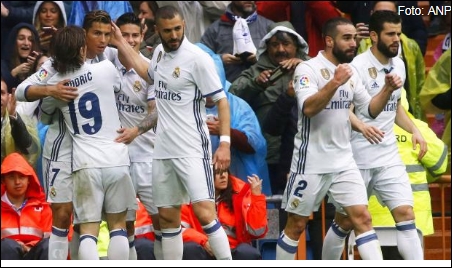 Cristiano Ronaldo zette Real in de eerste helft op voorsprong met de 367e competitiegoal uit zijn carrière. De 32-jarige Portugees verzuimde er in de 57e minuut 2-0 van te maken door een strafschop te missen. Dat moment werd Real uiteindelijk dus niet fataal. Door de winst heeft de ploeg van trainer Zinedine Zidane nu 81 punten uit 34 wedstrijden. Daarmee is de voorsprong op achtervolger FC Barcelona, dat later zaterdag op bezoek gaat bij Espanyol en daarmee weer een duel voorloopt op de rivaal, drie punten.(NU.nl)...[+]