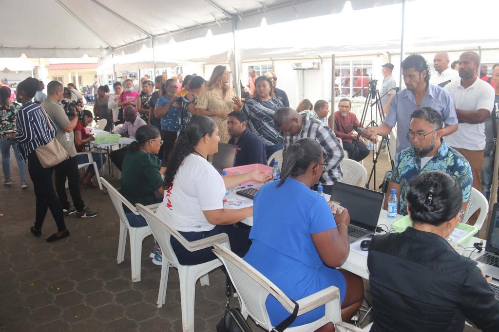 PARAMARIBO – Honderden ambtenaren waren op zaterdag 1 oktober aanwezig bij het hoofdkantoor van Biza, om met begeleiding van muziek en veel vertoon van saamhorigheid onder de ambtenaren, de start van het Public Sector Reform programma van de regering Santokhi/Brunswijk feestelijk te lanceren. Simultaan worden twee activiteiten hieruit afgewerkt namelijk het openen van de venster voor ambtenaren die vroegtijdig en vrijwillig uit overheidsdienst willen treden en de verplichte landsdienaren registratie, waarbij alle ambtenaren verplicht worden gesteld om zich te registeren. Indien daaraan geen gevolg wordt gegeven wordt het loon stopgezet.
