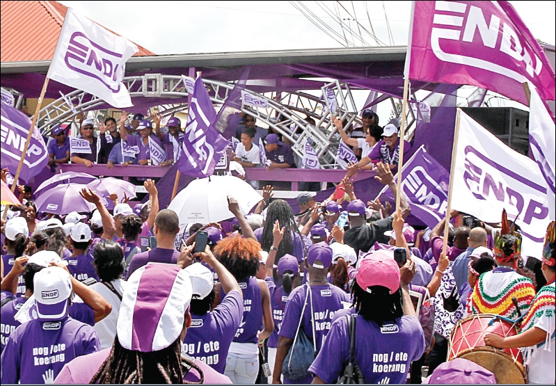 PARAMARIBO – Desi Bouterse, voorzitter van de Nationale Democratische Partij (NDP) doet een beroep op partijgenoten om onderling niet met elkaar overhoop te liggen voor het bemachtigen van posten. Na de verkiezingen komen 300 posten vrij en niet iedereen kan geaccommodeerd worden. Bouterse is van oordeel, dat er hard is gewerkt om dit punt te bereiken en wanneer de posten van ressortraadslid en districtsraadlid gekozen moeten worden, moeten mensen de missie niet vergeten…[+]