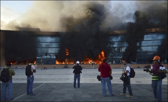 MEXICO- Honderden betogers hebben in de Mexicaanse staat Guerrero het hoofdkwartier in brand gestoken van de lokale overheid. De actievoerders zijn woedend over de recente verdwijning van 43 studenten, berichtte de BBC dinsdag. Volgens de betogers hebben politiemensen de verdwenen jongeren overgedragen aan een drugsbende…[+]
