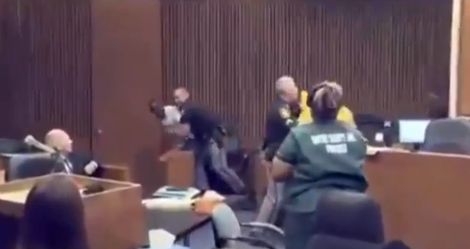 VS-Een furieuze vader heeft in een rechtbank in Detroit (VS) een man geslagen, die verdacht wordt van de moord op zijn 3-jarige dochter. Een camera in een rechtbank legde het vast. Op de beelden is te zien hoe vader Dwayne Smith uithaalt naar een mannelijke verdachte, die hij met zijn vuist op het achterhoofd raakt. De moeder van het vermoorde meisje en diens vriend staan terecht voor de moord. De peuter overleed in semtember 2014, nadat haar moeder haar met spoed naar een ziekenhuis had gebracht.(DE TELEGRAAF/telegraaf.nl)…[+]