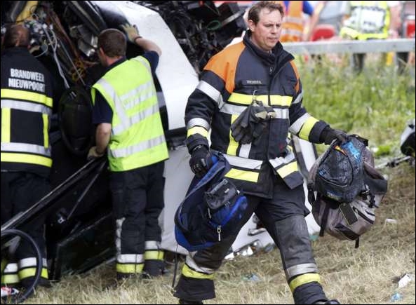 BELGIË – In België is zondagmorgen ter hoogte van Middelkerke een bus gekanteld met 34 Britse kinderen aan boord. Hulpdiensten zijn massaal uitgerukt. Veel kinderen raakte lichtgewond, twee zwaargewond. Een begeleider heeft het ongeluk niet overleefd. Volgens Het Laatste Nieuws waren 34 kinderen, zes volwassenen en een chauffeur aan boord en gebeurde het ongeluk even voor 10.00 uur. De bestuurder raakte zwaargewond, een begeleider die naast hem zat, overleefde de klap niet. Er zou ook een kleine brand zijn geweest in de motor.(AD/Foto: nos.nl)...[+]