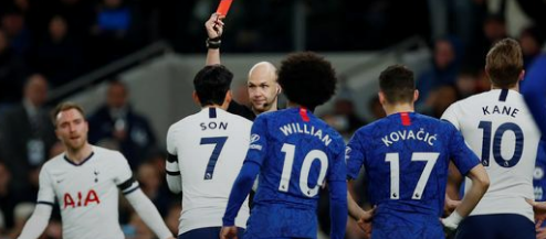 Chelsea heeft zondag in een verhitte derby met 0-2 gewonnen van Tottenham Hotspur. Son Heung-Min kreeg direct rood wegens natrappen. Manchester United ging eerder op de dag met 2-0 onderuit tegen hekkensluiter Watford.