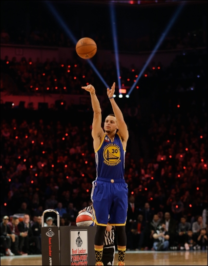 BASKETBAL – De expectations waren booming. En terecht, want een deelnemersveld met Klay Thompson, Stephen Curry, James Harden, Kyle Korver, Kyrie Irving, Wesley Matthews, JJ Redick en titelverdediger Belinelli is misschien wel het beste deelnemersveld ooit. Opzet is simpel. 5 rekken met 5 ballen, 4 rekken hebben 4 normale ballen en 1 moneyball en 1 rek bestaat uit alleen maar moneyballs. De shooters mochten zelf bepalen waar ze het money rek te zetten.(SA).(oto: Sportamerika)…[+]
