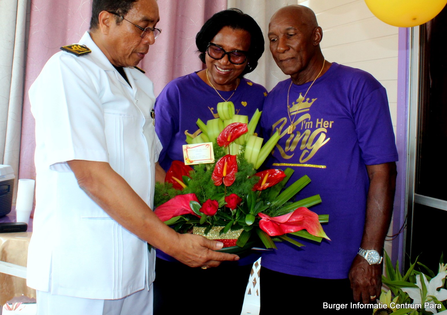 Eduard (72)  en Antoinette (69) Cramer – Kotzebue van Zanderij wooncentrum, vierden woensdag hun vijftig jarig huwelijksjubileum. Bij dit heugelijk feit bracht de districtscommissaris van Para, Armand Jurel, een bezoek aan het echtpaar om hen namens de president van de republiek Suriname te feliciteren en hen een enveloppe en bloemstuk te overhandigen.