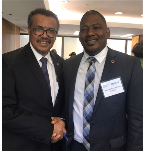 De nieuwe WHO Directeur-Generaal, Tedros Ghrebreyesus, heeft de COHSOD tijdens een speciale bijeenkomst van prominenten toegesproken. Hij gaf een korte uiteenzetting langs welke lijnen zijn beleid voor de komende vijf jaren zal lopen en benadrukte dat het Caribisch gebied speciale aandacht zal krijgen. Minister Pengel maakte gebruik van de gelegenheid om hem uit te nodigen om Suriname te bezoeken. Dr.Tedros op zijn beurt zal de mogelijkheden bekijken om nog voor het eind van dit jaar een officieel bezoek aan ons land te brengen.