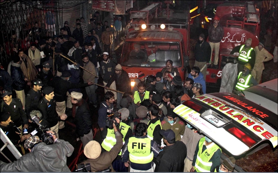 PAKISTAN  –    Een brand op een drukbezochte markt in de Pakistaanse stad Lahore heeft maandag het leven gekost aan zeker dertien mensen. Er vielen ook twee gewonden, melden de lokale autoriteiten. Oorzaak van de brand zou een kortsluiting zijn in een pand van vier verdiepingen. In de getroffen winkel werden elektrische apparaten, aanstekers en zonnebrillen gemaakt en verkocht. De hulpdiensten werden gehinderd door de smalle straatjes in de buurt waar de brand zich voordeed.(NRC)…[+]