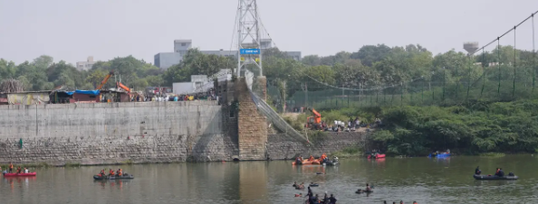 Zeker 141 mensen zijn zondag omgekomen bij de instorting van een hangbrug in de Indiase deelstaat Gujarat. Eerder werd nog gesproken van 81 doden. De Indiase politie heeft negen mensen aangehouden die betrokken waren bij het onderhoud van de brug. Maandag waarschuwde het hoofd van de politie in de stad Morbi dat het dodental waarschijnlijk nog zal oplopen. De zoektocht naar slachtoffers is nog steeds aan de gang. Een regeringsfunctionaris zegt dat het reddingswerk wordt bemoeilijkt door het modderige water. Honderden mensen vielen in de rivier toen de brug het zondag begaf. Zeker 177 mensen zijn levend uit het water gehaald. De oorzaak van de instorting is nog onduidelijk. Mogelijk bezweek de constructie onder het gewicht van de vele voetgangers.(NU)…[+]