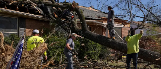 Het dodental door de storm en tornado’s die afgelopen weekend de VS teisterden, is opgelopen naar 32. Weerinstituut NWS waarschuwt voor meer noodweer in Texas op zondagavond (lokale tijd). De afgelopen dagen werden in zeven staten in het zuiden en midden van het land meer dan vijftig tornadowaarschuwingen afgegeven. Honderdduizenden mensen zaten vanwege het noodweer zonder stroom. Vooral Tennessee werd zwaar getroffen: daar kwamen vijftien mensen om het leven. President Joe Biden riep zondag de noodtoestand uit in Arkansas, waardoor die staat federale hulpfondsen kan aanspreken. Hij sprak ook met gouverneurs van andere getroffen staten over noodhulp en zegde federale steun toe voor de wederopbouw van zwaar beschadigde gebieden.(NU)…[+]