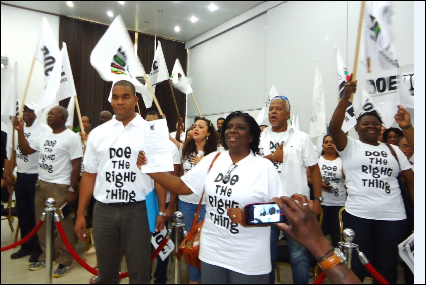 PARAMARIBO – De politieke partij Democratie en Ontwikkeling in Eenheid (DOE) wil bij de komende verkiezingen in ten minste zes districten meedoen. Ondervoorzitter Marlyn Aaron-Denz van DOE geeft aan, dat deelname in de districten Paramaribo, Wanica, Commewijne, Para en Nickerie al zeker is, maar in het district Saramacca is de partij nog niet zeker van deelname. ron-Denz geeft aan, dat de partij intern nagaat of deelname in het district Saramacca nog haalbaar is. Volgens haar is geld de voornaamste reden waarom de partij niet in staat is om in alle tien districten mee te doen aan de verkiezingen…[+]