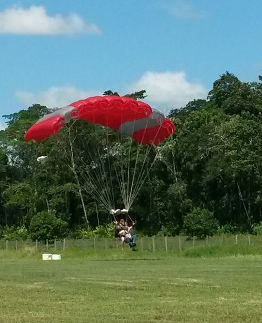 SARAMACCA – Districtscommissaris (dc) Laksmienarain Doebay heeft zaterdag te Tijgerkreek in het district Saramacca, het startsein mogen geven voor het parachutespringen. Op 25 november zullen er parachutesprongen plaatsvinden op het Onafhankelijkheidsplein. De organisatie die hiermee belast is, heeft zaterdag en gisteren voorsprongen gedaan. Doebay mocht de eerste sprong doen. Het was de eerste keer voor de burgervader, die vanaf 8000 voet heeft gesprongen, zonder dat hij ooit heeft geoefend. “Als burgervader moet je van alles een beetje kunnen”, zegt Doebay. Het was een leuke ervaring voor de dc om te springen. Hij werd met applaus verwelkomd door het grote publiek. Doebay bedankte de organisatie voor de gelegenheid. De volgende ochtend hadden vrijwilligers de gelegenheid om zich aan te melden als zij ook wilden springen. Enkelen hebben daadwerkelijk gesprongen...[+]