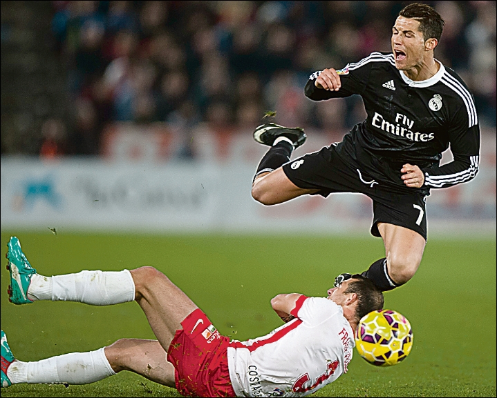 VOETBAL – Real Madrid is klaar voor het WK voor clubteams in Marokko. De ploeg van Carlo Ancelotti zegevierde gisteravond in en tegen Almería: 1-4. Het was alweer de twintigste zege op rij voor de lijstaanvoerder van de Primera División. Iker Casillas vervulde een belangrijke rol; de doelman keerde een strafschop bij een tussenstand van 1-2. Cristiano Ronaldo nam de 1-3 en 1-4 voor zijn rekening en is de eerste speler van Real Madrid die op alle dagen van de week een competitiegoal heeft gemaakt. Isco en Gareth Bale waren eveneens trefzeker.(Foto:AP).(VZ)…[+]