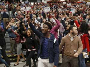 USA – Donald Trump has ordered dozens of black students to be removed from a campaign rally as a furor continues to rage over his failure to condemn the Ku Klux Klan on CNN. The Republican Presidential candidate was speaking at Radford University in Virginia on Monday when the group started chanting: “No more hate! No more hate! Let’s be equal, let’s be great!”
