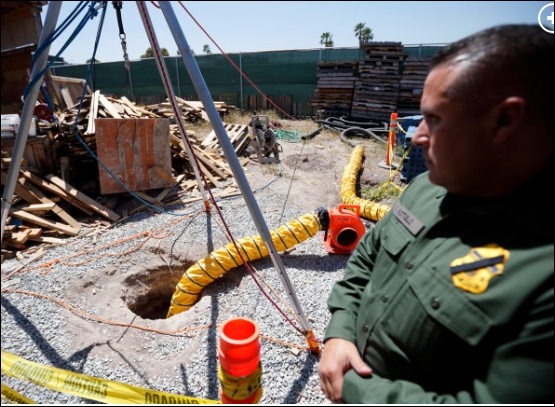 The tunnel extends 300 yards from a house in Tijuana, Mexico, to the border and then 500 yards on the U.S. side to a fenced lot in a San Diego industrial area. The tunnel was equipped with a rail system, ventilation, lights and a large elevator, officials said. The exit on the U.S. side is about 3 feet wide and was covered by a trash bin. The six people arrested in San Diego on Friday were charged with crimes involving drugs and construction of the tunnel.(Nypost.com)…[+]