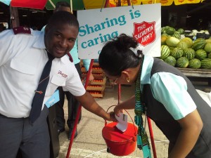 NICKERIE – Het filiaal van De Surinaamsche Bank (DSB) heeft bij de start van de kerstpottenactie van het Leger des Heils (LdH) in Nickerie een eerste donatie van SRD 5000 gedaan. Dit gebeurde vrijdagmorgen op het terrein voor de openbare markt van Nickerie waar kapitein Winston Samedi en luitenant Edras Maneus van het LdH op voortreffelijke wijze de kerstpottenactie Nickerie hebben ingeluid.