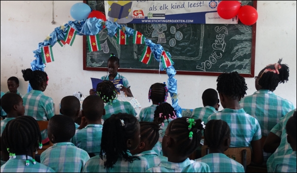 Suriname heeft ook dit jaar weer 44 voorleeskampioenen, 22 leerlingen van de bovenbouw en 22 van de onderbouw. Deze 44 kampioenen zijn als beste uit de bus gekomen, nadat ze hebben meegedaan aan voorleeswedstrijden in hun klas, vervolgens op hun school en ten slotte in hun regio, ressort of district.Voor alle voorleeskampioenen en hun begeleiders werd door Stichting Projekten een educatieve dag georganiseerd in Paramaribo en wel op vrijdag 7 augustus. De stichting heeft, nadat het niet mogelijk bleek om alle kampioenen uit de 22 regio’s naar Paramaribo te halen, besloten om deze activiteit uit te stellen en te combineren met de feestavond op vrijdag 20 november, de Internationale dag van de rechten van het kind…[+]