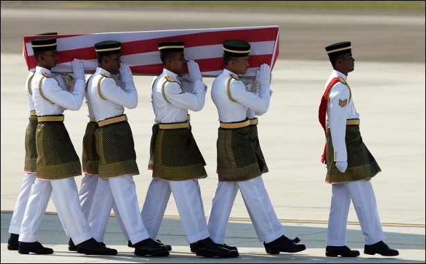 MALEISIE- De eerste kisten met lichamen van Maleisische slachtoffers van de ramp met vlucht MH17 zijn aangekomen in Maleisië. Hun terugkeer valt samen met een dag van nationale rouw in het land. Bij aankomst werd een ceremonie gehouden die behalve familieleden werd bijgewoond door koning Abdul Halim Mu’adzam Shah en premier Najib Razak…[+]