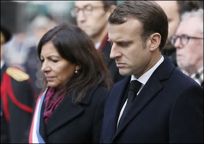 Macron laid a wreath and stood grim-faced as the names of those killed in the bombings and shootings were read out and a minute’s silence was held at each of the places the terrorists struck.