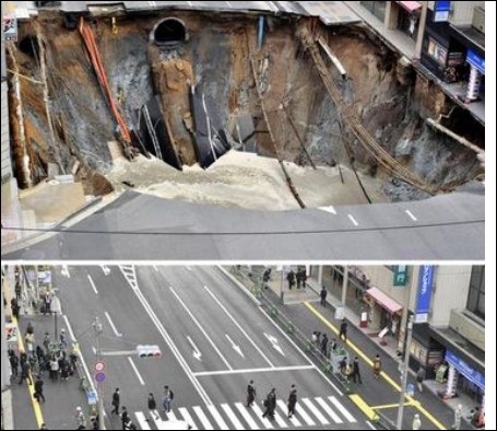FUKUOKA – Het gigantische sinkhole dat vorige week een vijfbaanweg in het Japanse Fukuoka opslokte, is na een week als sneeuw voor de zon verdwenen. Bouwvakkers werkten 24 uur per dag om het gapende gat te dichten. Inmiddels is de weg hersteld en lijkt alles weer normaal. Het gat van dertig meter breed en vijftien meter diep werd gevuld met een mix van zand en beton. De klus werd bemoeilijkt door de enorme hoeveelheid water die vanuit riolen in het gat stroomde. Het sinkhole werd veroorzaakt door werkzaamheden aan een metrolijn.(Telegraaf)…[+]