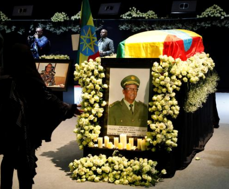 ADDIS ABABA – Ethiopia held a memorial on Tuesday for the army chief of staff slain with four other senior officials in weekend attacks that posed the biggest threat yet to the prime minister’s reforms. Abiy Ahmed, who survived a grenade attack at a rally in his honor last year, sat in the front row at the memorial and wiped tears from his eyes with a white handkerchief.