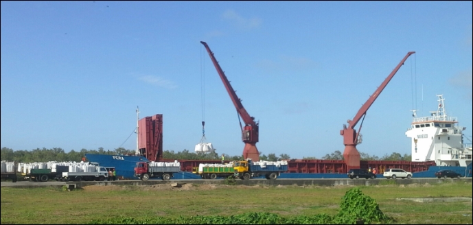 NICKERIE – Precies een week nadat minister Winston Lackin van Buitenlandse Zaken en zijn collega Soeresh Algoe van Landbouw, Veeteelt en Visserij (LVV) symbolisch het startsein hebben gegeven om een aanvang te maken met de export van 30.000 ton padie naar Venezuela, is pas gistermiddag omstreeks vijf uur een aanvang gemaakt met het inladen van het Venezolaanse schip Pera, dat sedert zaterdagmiddag in de haven van Nieuw-Nickerie ligt. Het schip Halco del Mar dat eerder in de haven van Nieuw-Nickerie lag aangemeerd en in eerste instantie de eerste lading naar Venezuela zou verschepen, werd door voornoemd land afgekeurd, omdat het niet zou voldoen aan de eisen…[+]