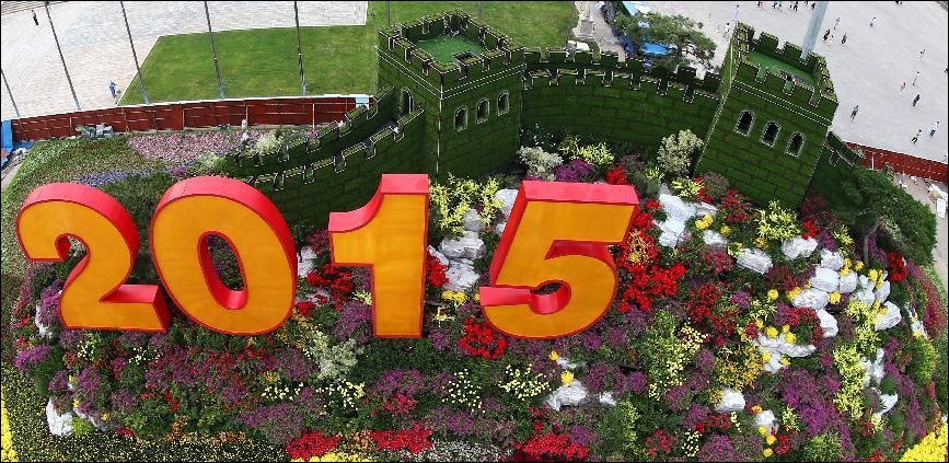 Flower decoration placed on Tian’anmen Square for V-Day celebration