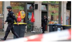 A witness told German n-tv news that a gunman in camouflage opened fire with an assault rifle on a doner kebab shop.”The man came up to the Doner shop, he threw something like a grenade, it didn’t explode, and he opened fire with an assault rifle. The man behind me must have died… I hid in the toilet,” the witness told a TV reporter near the scene.