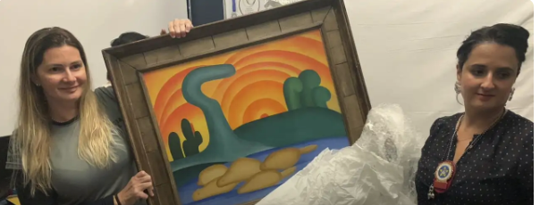 De politie van Rio de Janeiro heeft een gestolen schilderij met een waarde van 300 miljoen real (ruim 57 miljoen euro) woensdag aangetroffen onder het bed van een oplichter, meldt The Guardian. Het werk, Sol Poente (Ondergaande zon) uit 1929 van Tarsila do Amaral, was gestolen van de weduwe van een kunsthandelaar en -verzamelaar. Een oplichtersbende stal zestien schilderijen met een geschatte waarde van 135 miljoen euro van de 82-jarige vrouw en maakte daarnaast een collectie sieraden ter waarde van ruim 1 miljoen euro buit. De politie arresteerde vier verdachten, onder wie de dochter van het slachtoffer. De criminelen organiseerden de kunstroof rond nepvoorspellingen van een valse helderziende. Volgens de politie gaf de dochter van het slachtoffer deze zogenaamde helderziende in 2020 opdracht om haar moeder te benaderen toen ze uit een bank in de wijk Copacabana kwam.(NU)…[+]