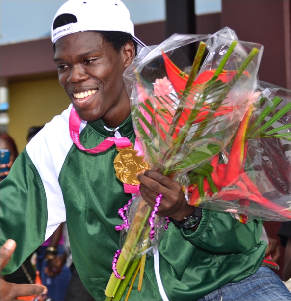 ATLETIEK – “Disi na fu Sranan.” Dit zei de golden boy Miguel van Assen zaterdag op de Johan Adolf Pengel luchthaven, nadat hij door tientallen Surinamers werd ontvangen. De zeventienjarige Van Assen heeft op het onderdeel hink-stap-springen goud behaald bij de Youth Olympic Games in Nanjing, China. De delegatie keerde zaterdag terug uit China. Van Assen bedankte iedereen en was dankbaar voor de warme ontvangst. Zonder ‘jullie’ zou ik het niet ver geschopt hebben, zei hij ook…[+]
