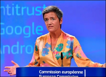 Margrethe Vestager, the EU’s competition commissioner, said Google has used its Android mobile phone operating system “to cement its dominance as a search engine”, preventing rivals from innovating and competing “and this is illegal under EU antitrust rules”. Vestager added: “The vast majority of users simply take what comes with their device and don’t download competing apps. “Or to slightly paraphrase what [US free market economist] Milton Friedman has said ‘there ain’t no such thing as a free search.’”(theguardian)…[+]