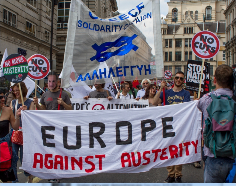 GRIEKENLAND – De Griekse bevolking gaat vanavond wederom massaal de straat op. Dit keer zijn het de pro-Europese Grieken die tijdens het Europese topoverleg hun stem laten horen. Zij laten, net als afgelopen donderdag, duidelijk weten dat Griekenland niet uit de eurozone mag vertrekken. ZONDAF organiseerde de regeringspartij Syriza een manifestatie op het Syntagmaplein, pal voor het parlementsgebouw. Daar kwamen enkele duizenden demonstranten op af. Er werd gescandeerd dat Griekenland uit de eurozone moet vertrekken.(De Telegraaf)...[+]