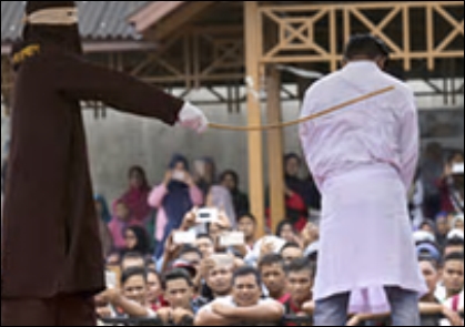 Two gay Indonesian men have been arrested and face 100 lashes in a case that is drawing international attention to the enforcement of controversial new Islamic bylaws in the semi-autonomous Aceh province. Mobile phone footage, showing vigilantes slapping one of the young men as he sits naked on the ground awaiting arrest by local sharia police, has been shared on social media in the world’s largest Muslim-majority country.